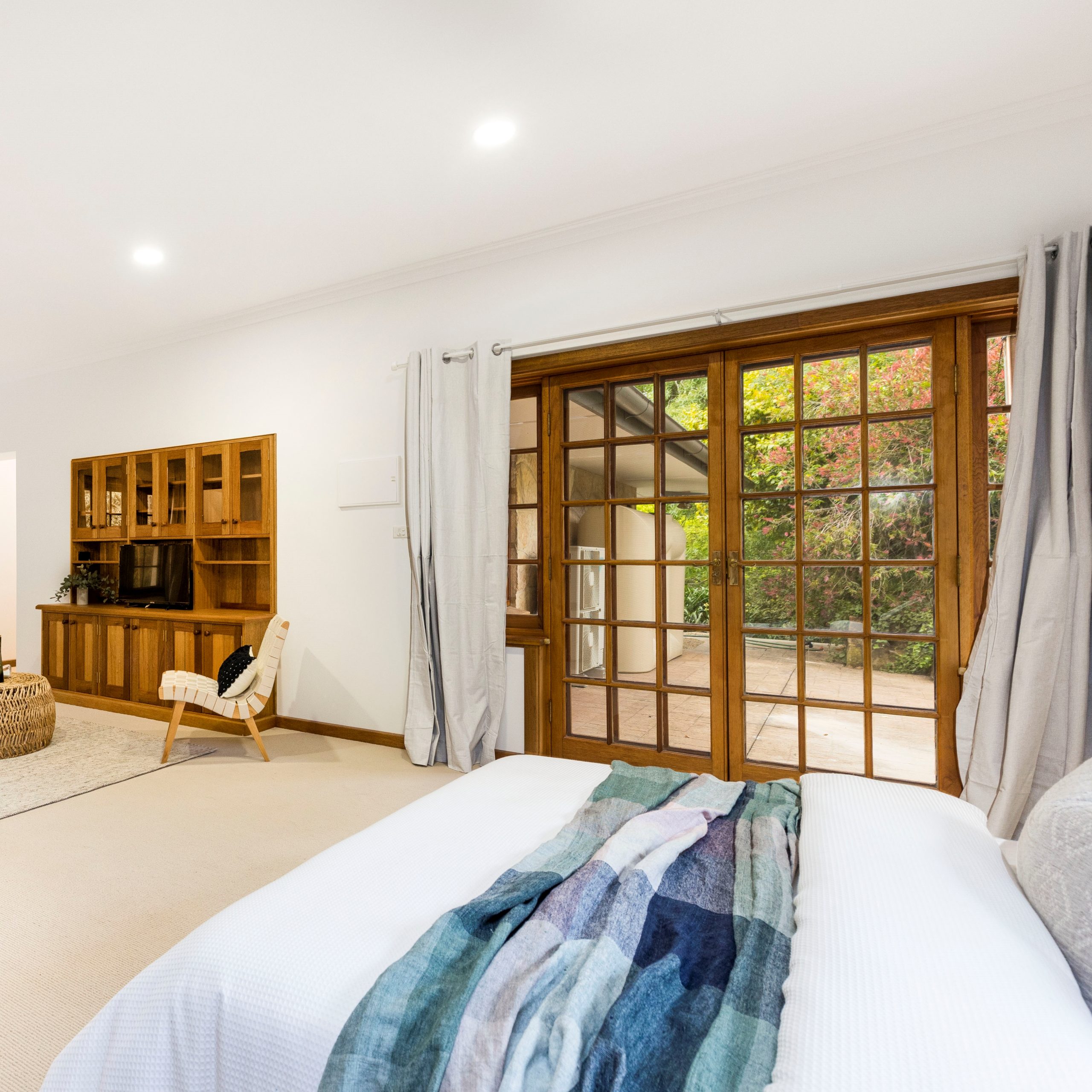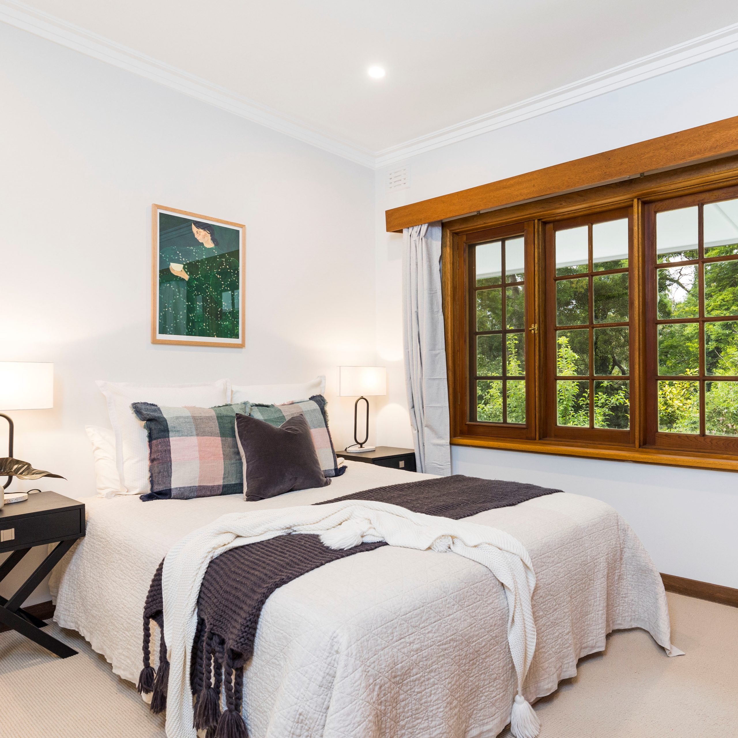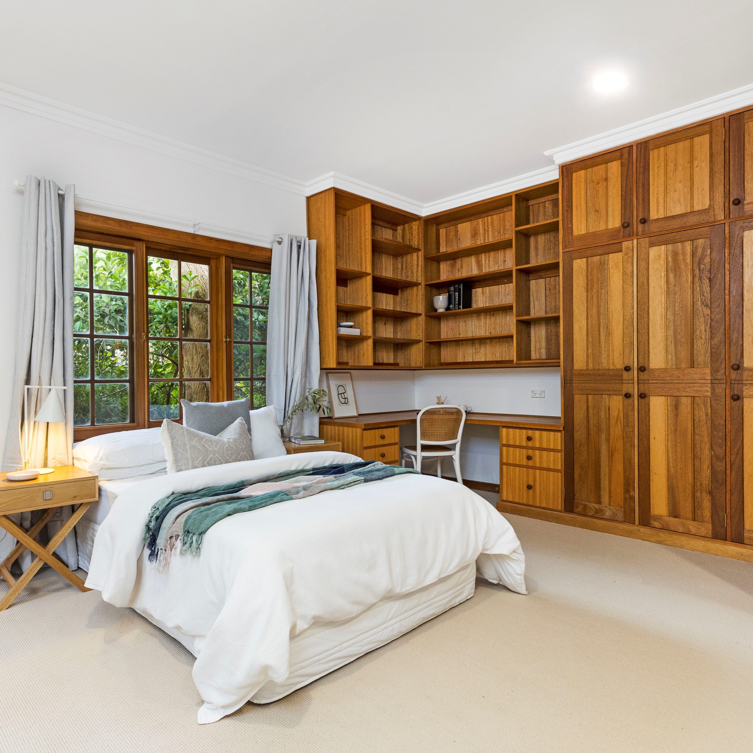 Selecting a warm neutral pallet, the bedrooms were updated with wool carpets, built-in storage plus stylish curtains. To top off the renovation, we installed two new bathrooms and fleshly landscaped the gardens.
