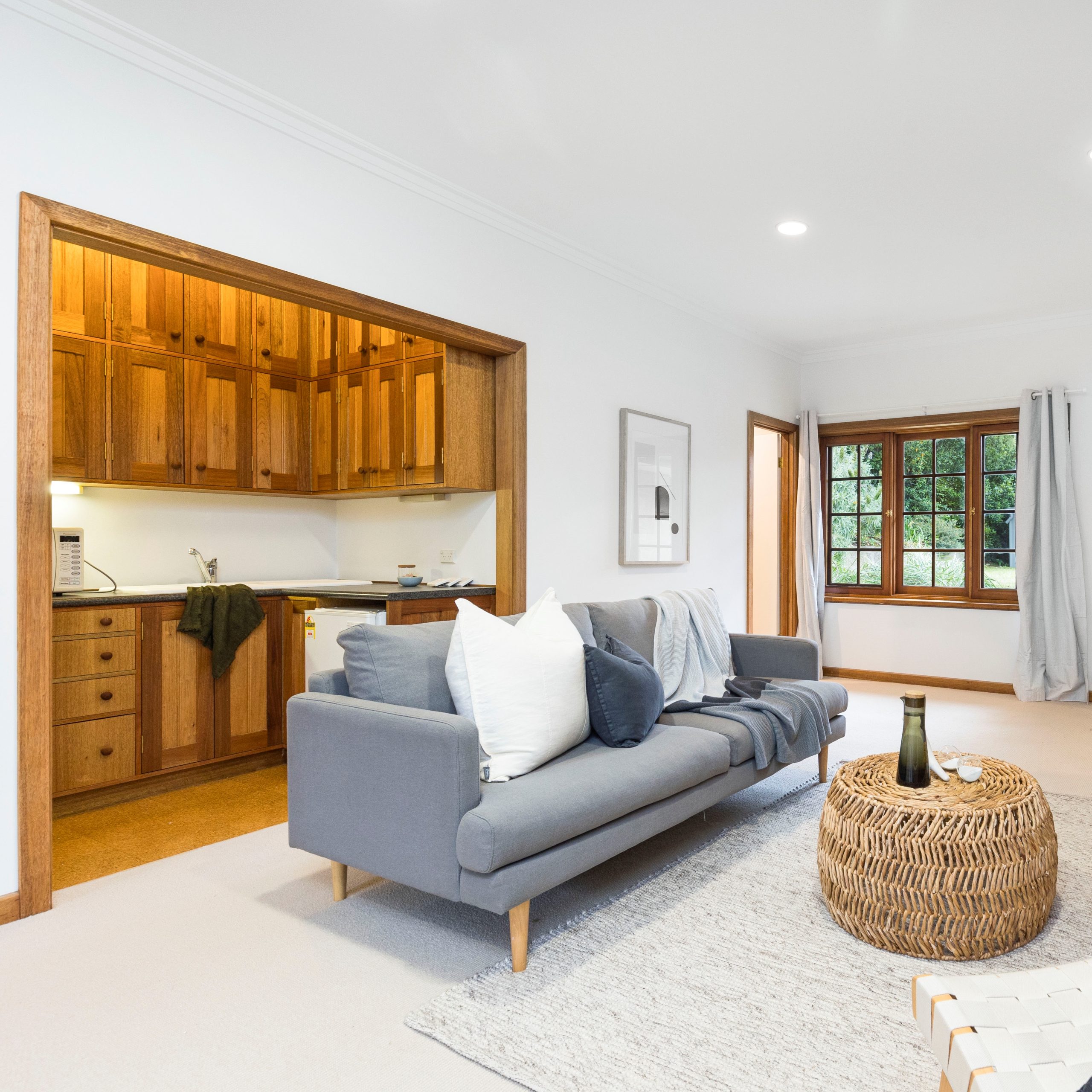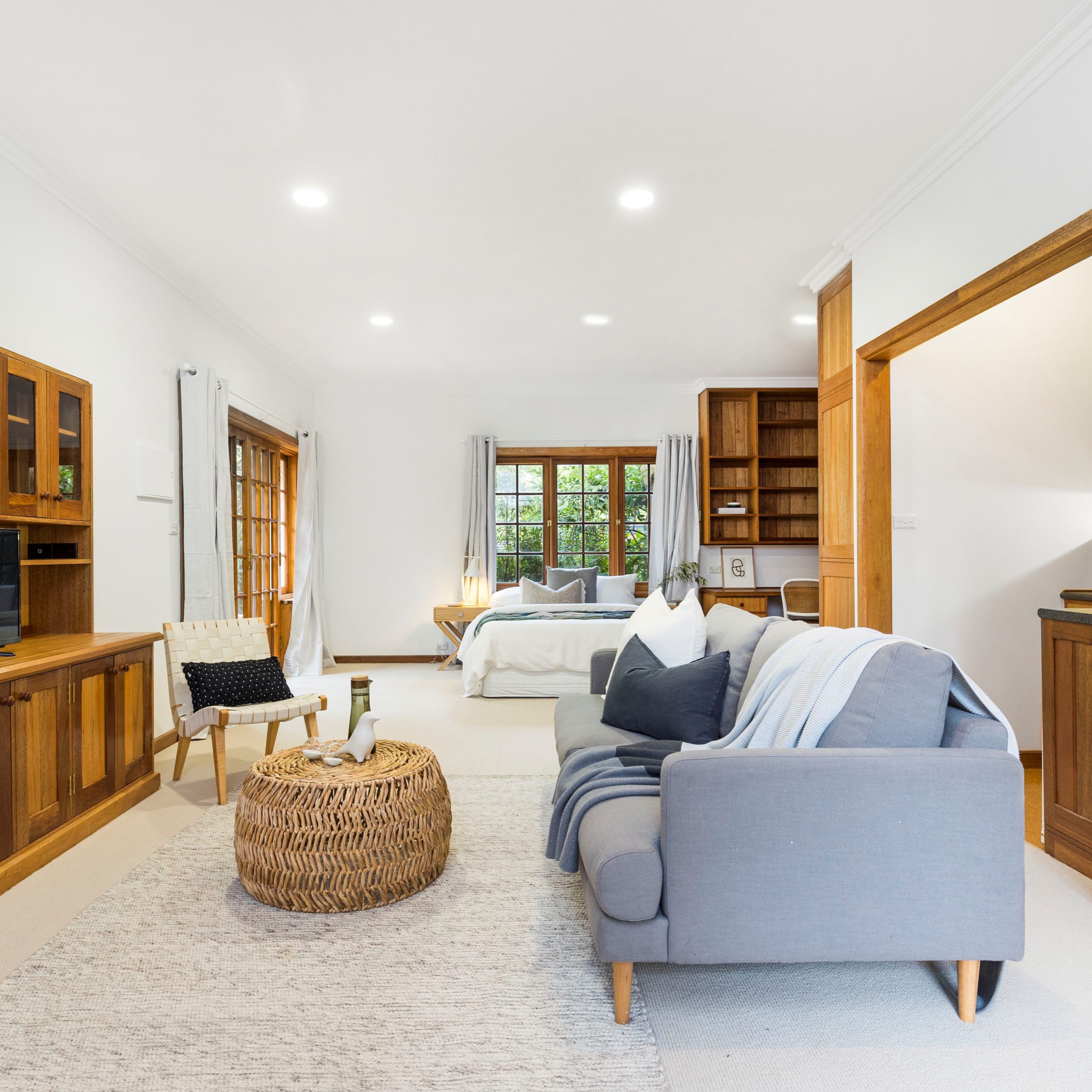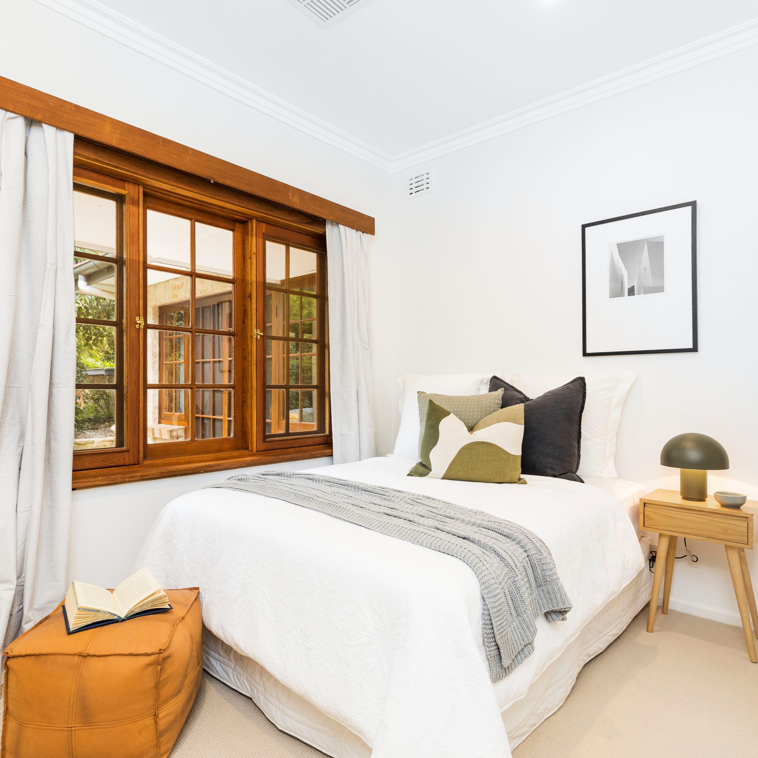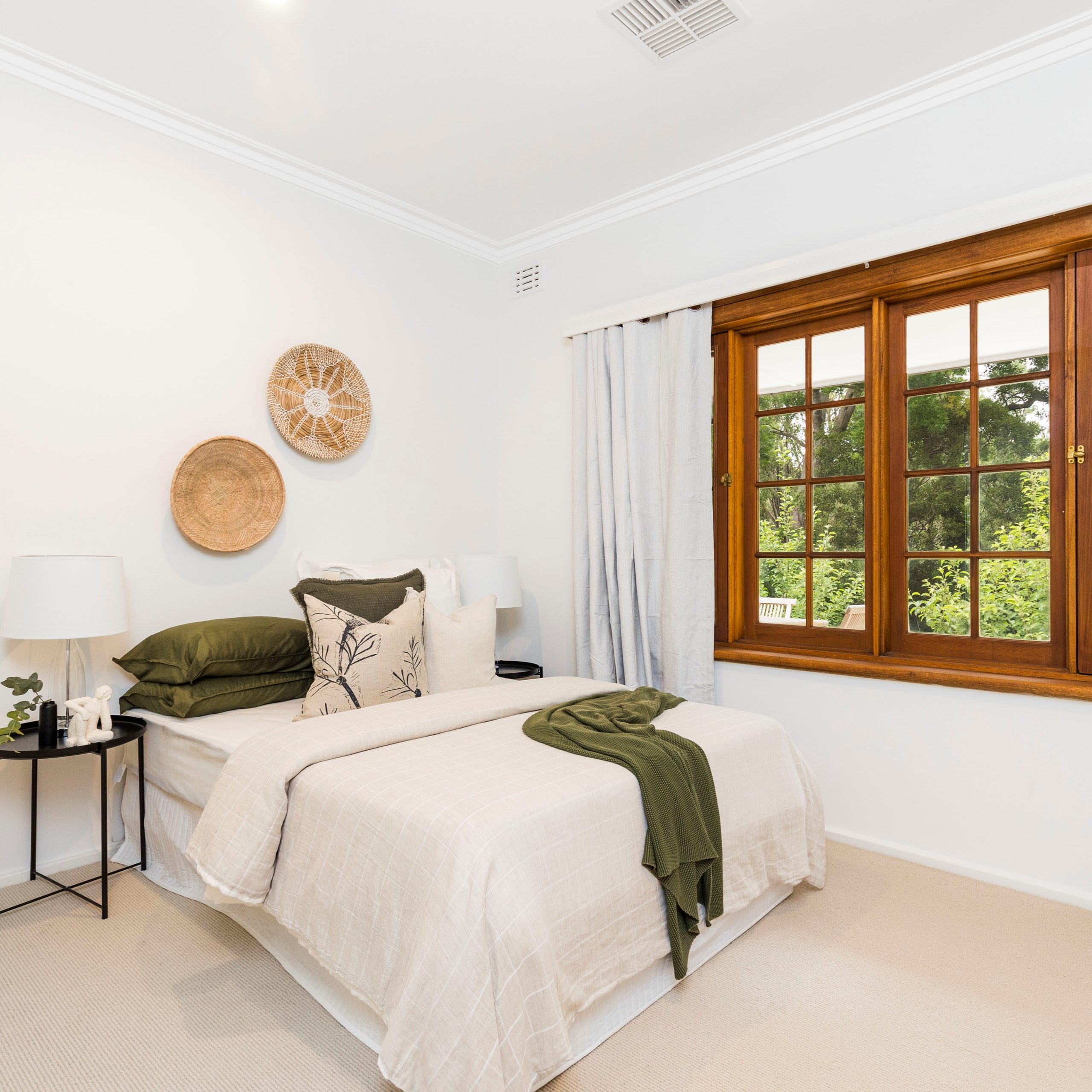 Selecting a warm neutral pallet, the bedrooms were updated with wool carpets, built-in storage plus stylish curtains. To top off the renovation, we installed two new bathrooms and fleshly landscaped the gardens.