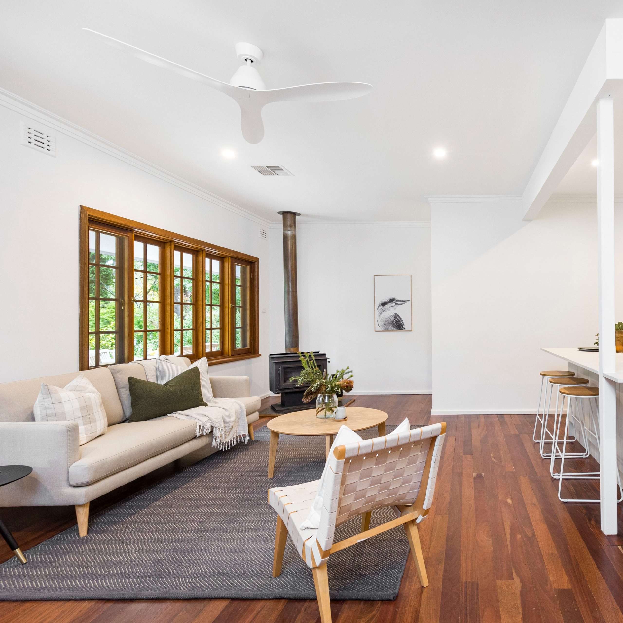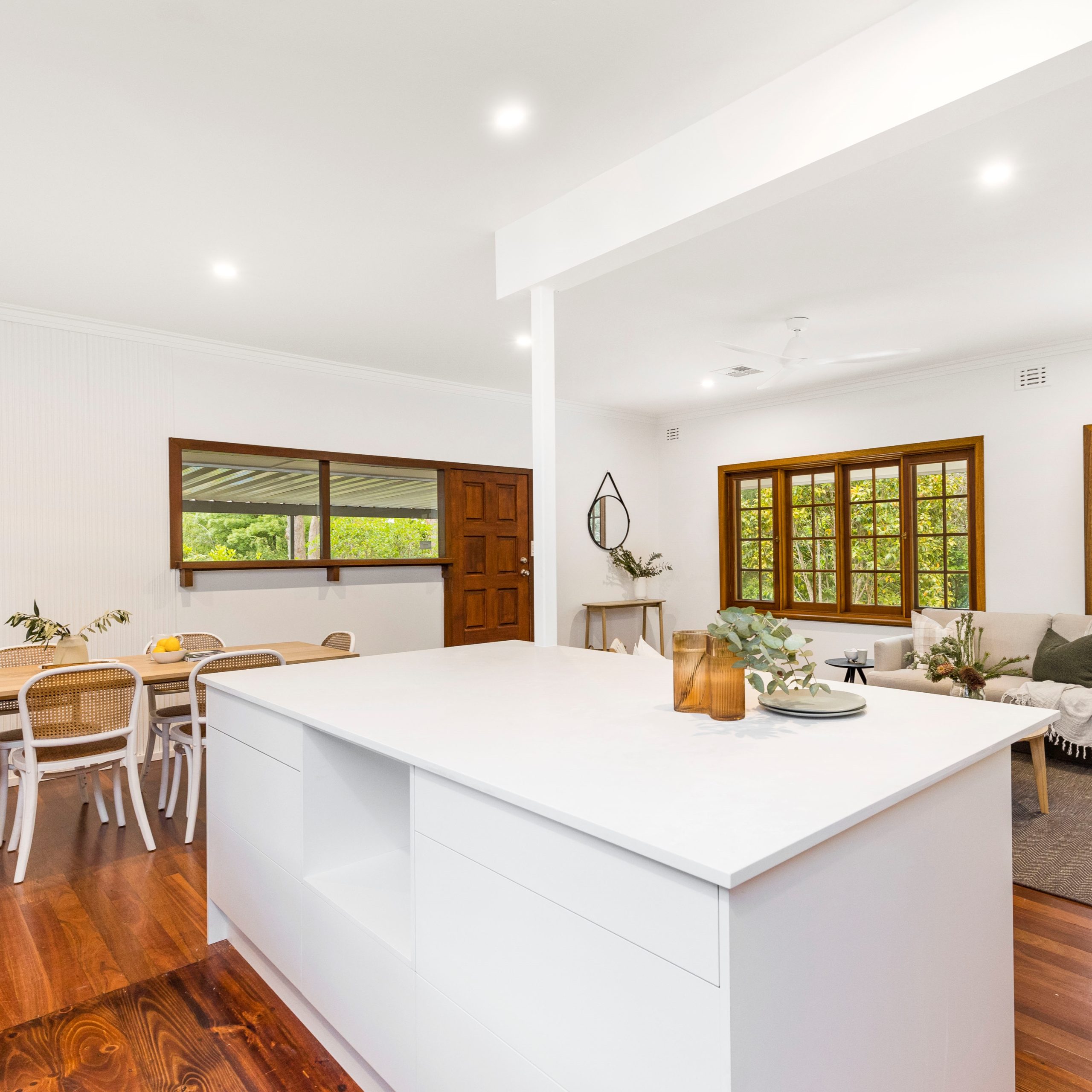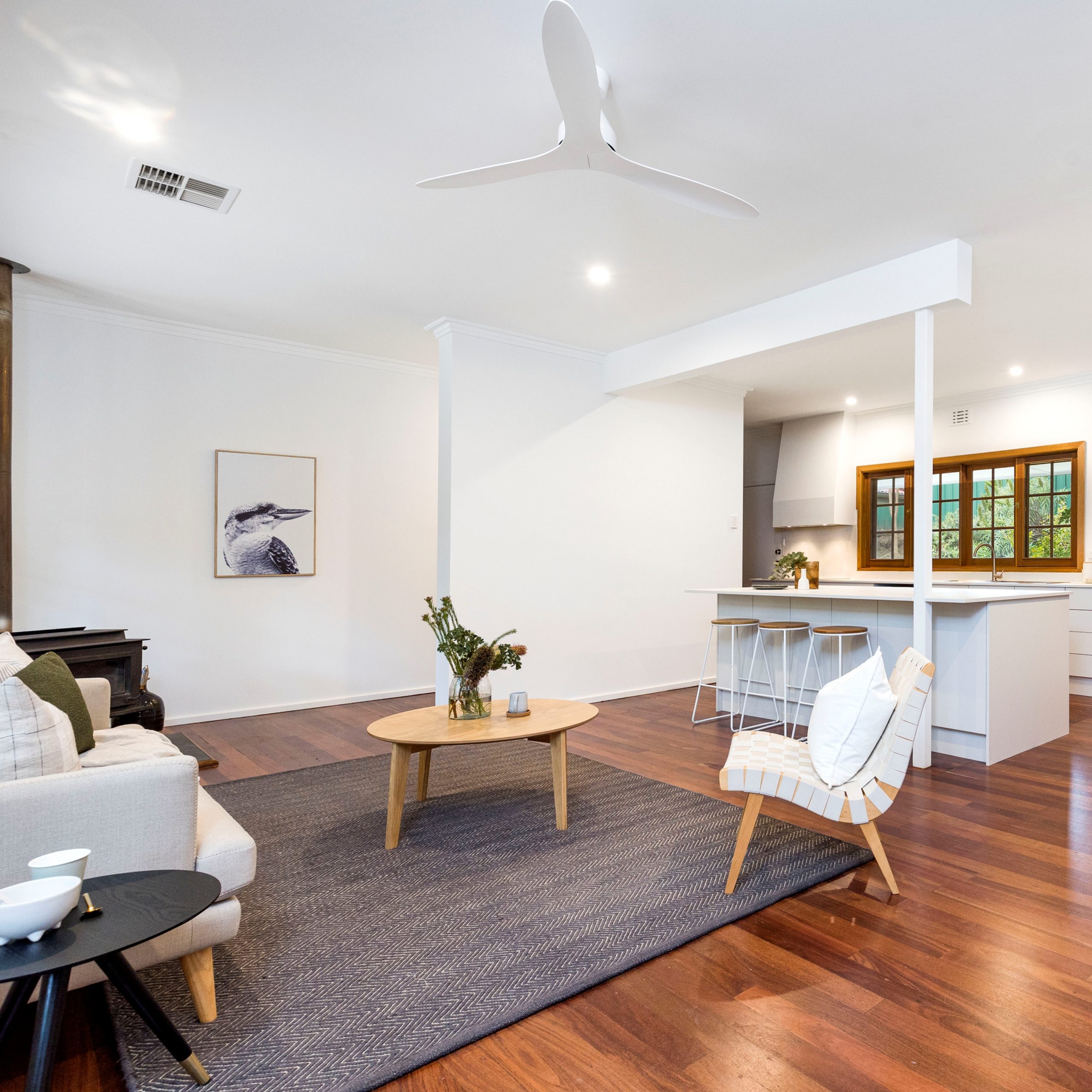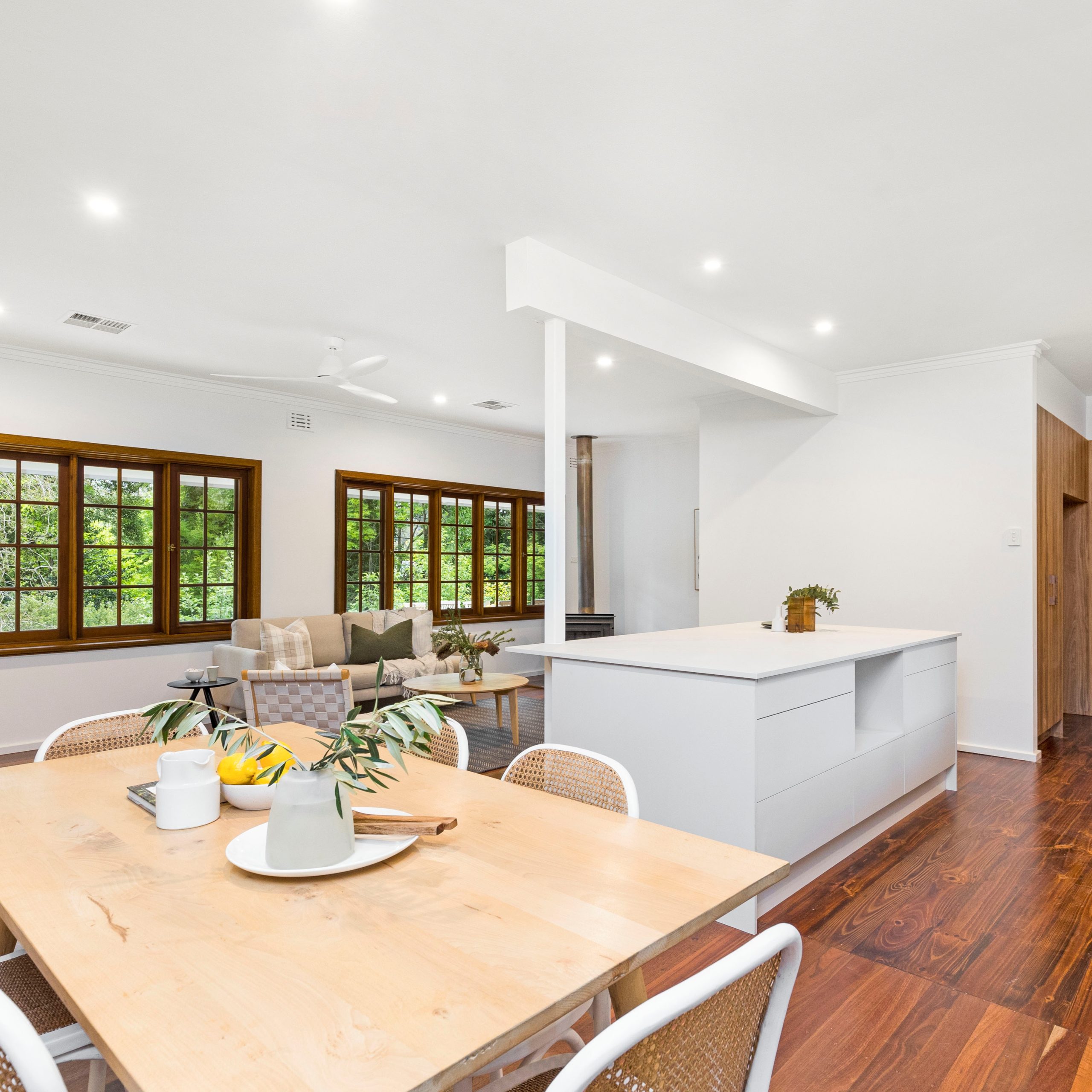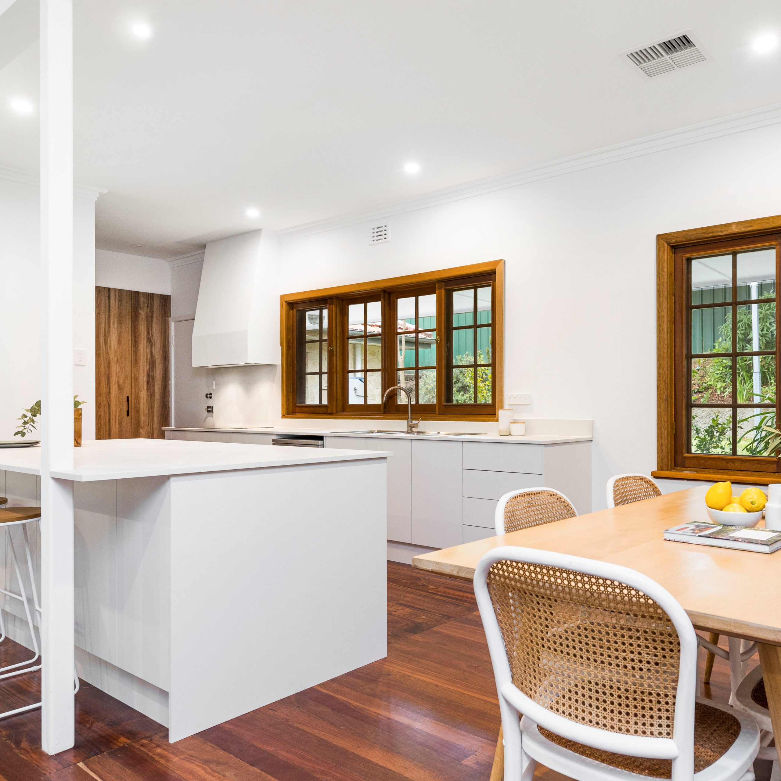 Starting with the removal of a wall to create a stunning open plan living area, complete with new kitchen, lighting, and restoration of the beautiful original Jarrah floor boards.
